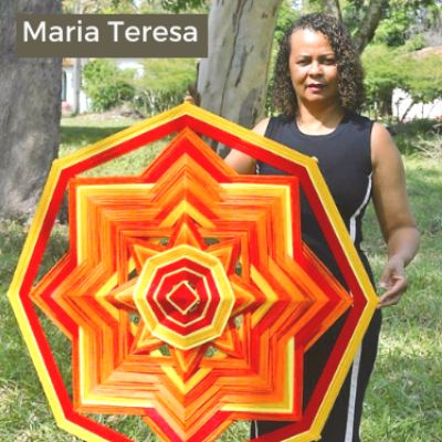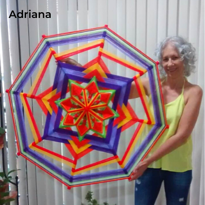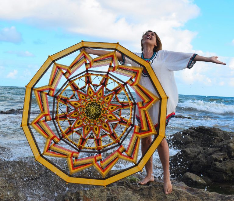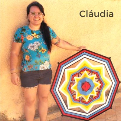 Tamie Saita é Pedagoga e professora online de Mandalas de lã desde 2015 e começou a tecer em 2008.